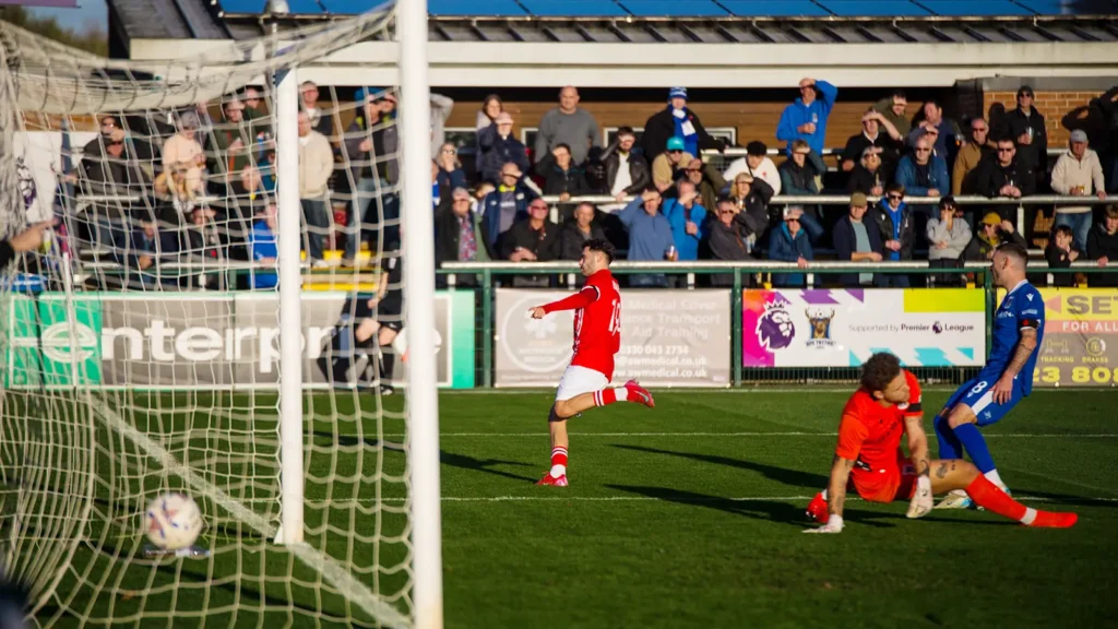 But the Fleet found themselves in front with just nine minutes on the clock when a quick counterattack ended with Finlay Barnes getting on to a ball from the right and he steered that into the bottom left corner.