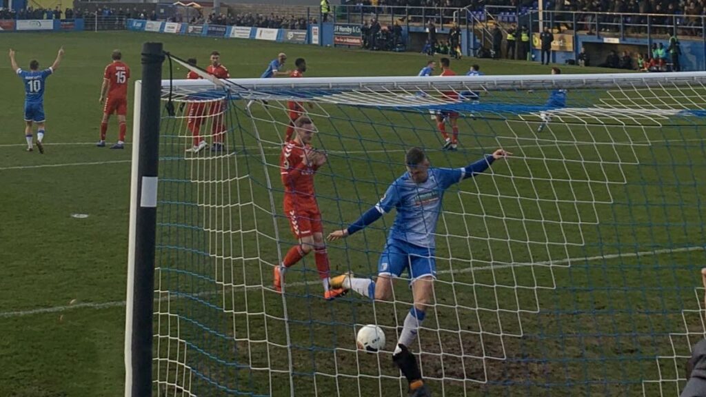 Calamity upon calamity followed as John Rooney immediately drove home an unstoppable free-kick. Fleet tried to reorganise, with Grimes pulled into King’s vacant berth and Andre Blackman, the only player who’d enjoyed a run towards goal for the Fleet, forced to deploy further back down the left flank.