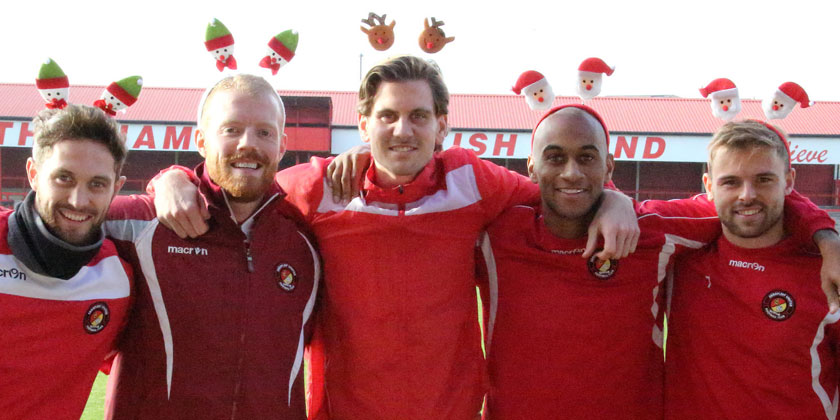 Some of the first-team’s best headers of the ball donned head-boppers at a training session at Stonebridge Road to promote this year’s Gravesham Borough Council Guinness World Record attempt.