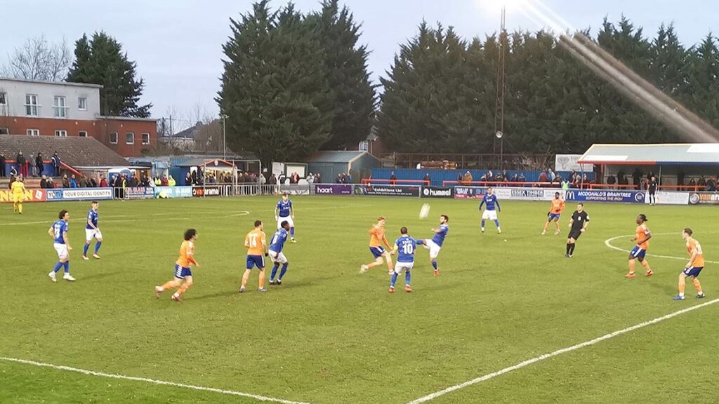 In unfamiliar white shorts to go with their blue shirts, Fleet got off to the perfect start once again to deliver a knockout blow to Braintree’s hopes of building on their win over Maidenhead. McDonald did well to win a corner out of nothing with a back heel and it was he who met Jack Payne’s set piece, getting just above the ball with his head to send it beyond Ben Killip for the opener.
