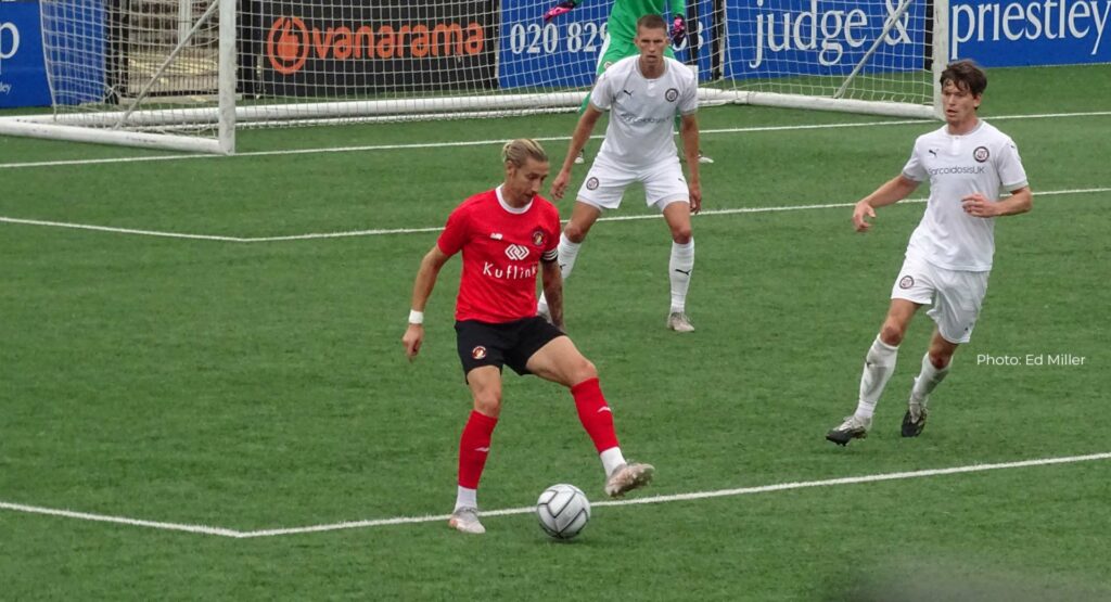 Bromley ended the Fleet’s 100% start to pre-season with a slick, clinical display, two goals in either half giving the Ravens the victory at Hayes Lane – though the margin of victory was harsh on the men in red. The visitors were left to curse goalkeeper Mark Cousins’ display as his determination to keep a clean sheet, particularly in the first-half, kept the Fleet’s forwards at arm’s length.