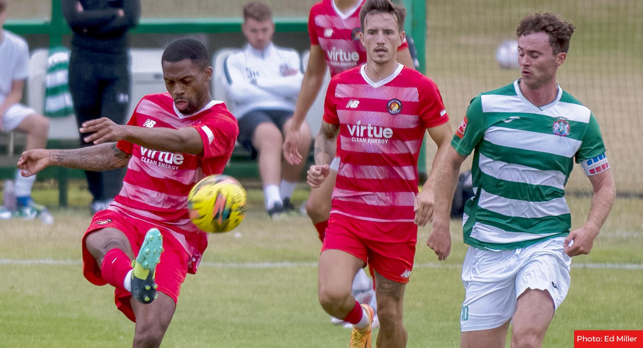 So too was Kieran Monlouis to the fore with an energetic display in midfield but with the numerical disadvantage, Poleon couldn’t quite open up the hosts’ back line despite an excellent, hard-working performance from the Fleet striker.