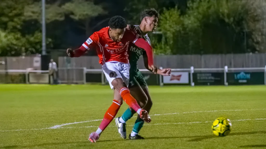 That lead would soon be doubled as the goalscorer became the provider – a low ball from the right by Seaman was met by George Moncur who arrived in the area to stab the ball home for the Fleet’s second of the evening.