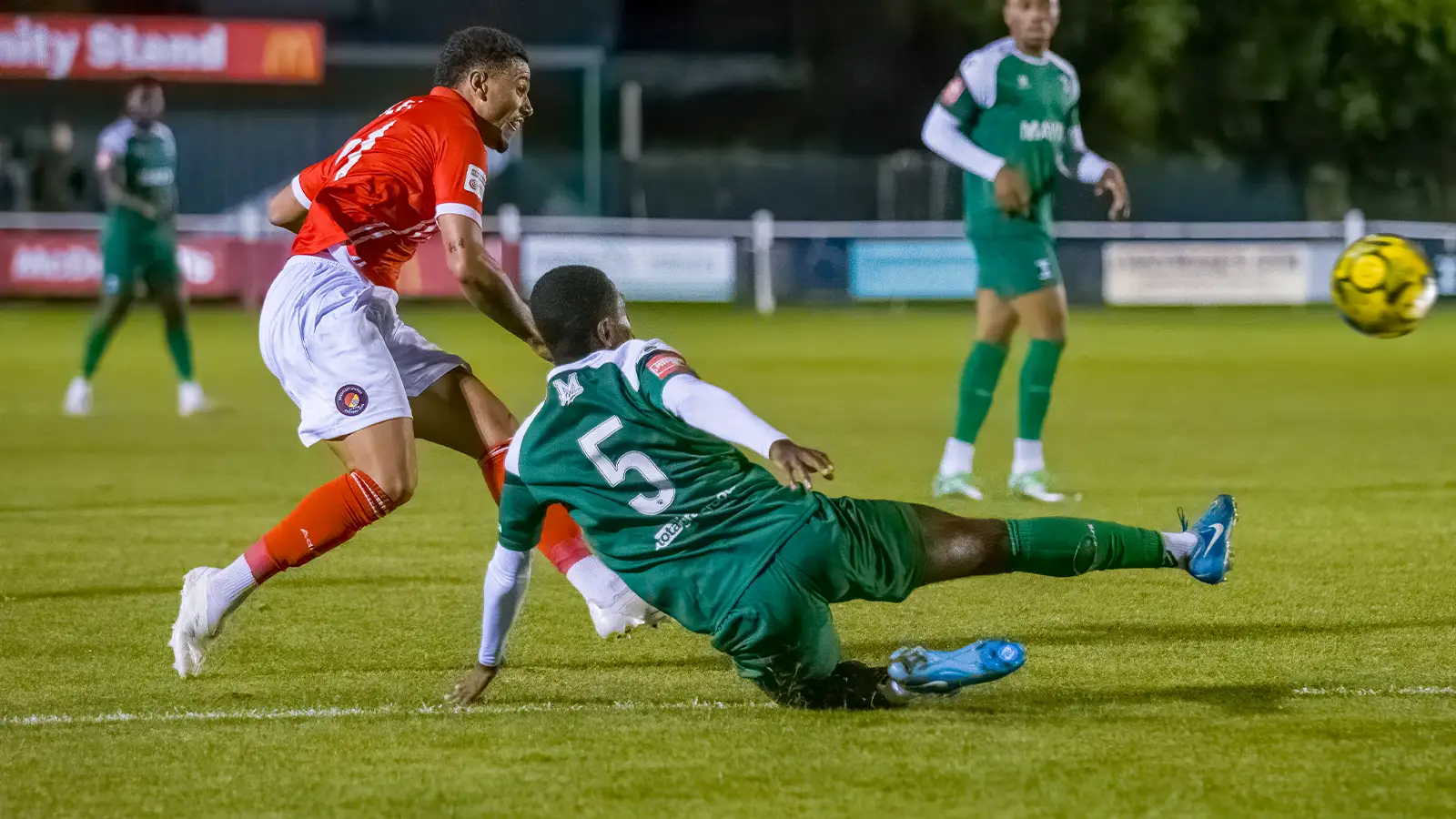 Dom Samuel’s return to the side saw him instantly involved in the action as he struck one from the edge of the area, collected by goalkeeper Dan Smith.