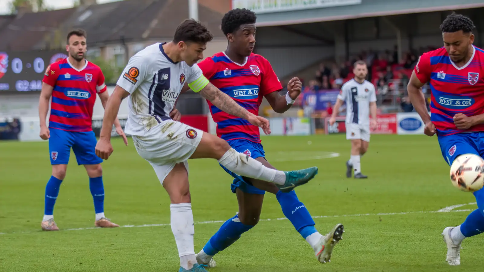 The first chance of the match arrived for the Daggers with just four minutes on the clock when Oscar Rutherford attacked to provide Josh Rees with some space and he rifled a shot towards goal that smacked off the Fleet crossbar.