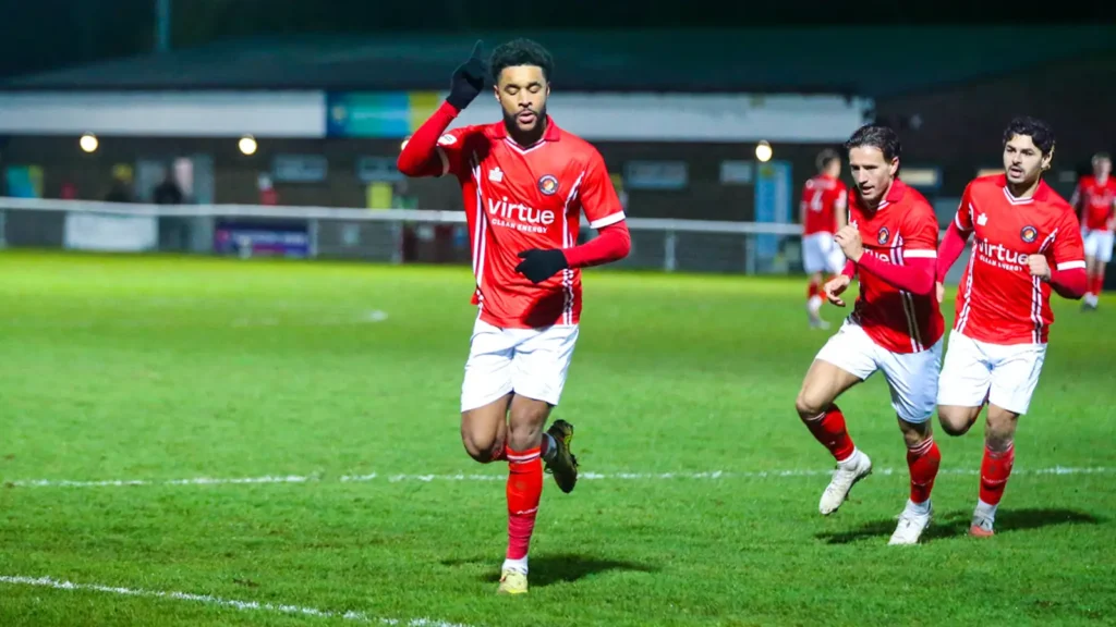 But Fleet took a deserved lead in the 18th minute. Peake sent over a corner delivery from the right that needed a headed clearance but the ball fall perfectly into the path of Toby Edser who controlled it and then arrowed a brilliant shot to leave Walker no chance of stopping it.