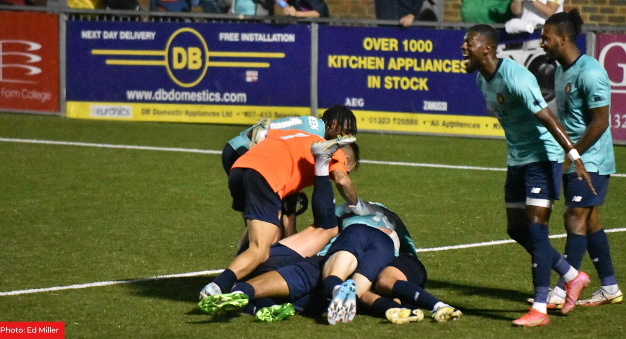 Fleet’s against-all-odds victory means that Eastbourne have now gone 22 games without a win against their bogey side – and they’ll surely never be in a better position than they were with 10 minutes left here, 2-1 up against 10 men and an outfield player in goal.