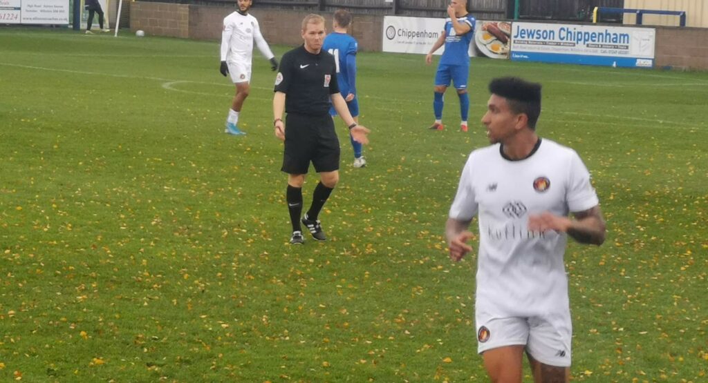 “English football, English weather… so totally wet!” said Kutrieb as rain poured on to gloomy stands at Chippenham without let up following his side’s 2-1 win. “Very heavy conditions second half so big credit to the boys. But we were very unhappy after 45 minutes, we started heavy in the game with an easy mistake again and conceded an easy goal. But they showed the right reaction in the second half and scored two goals, so especially for those conditions big credits for them.”