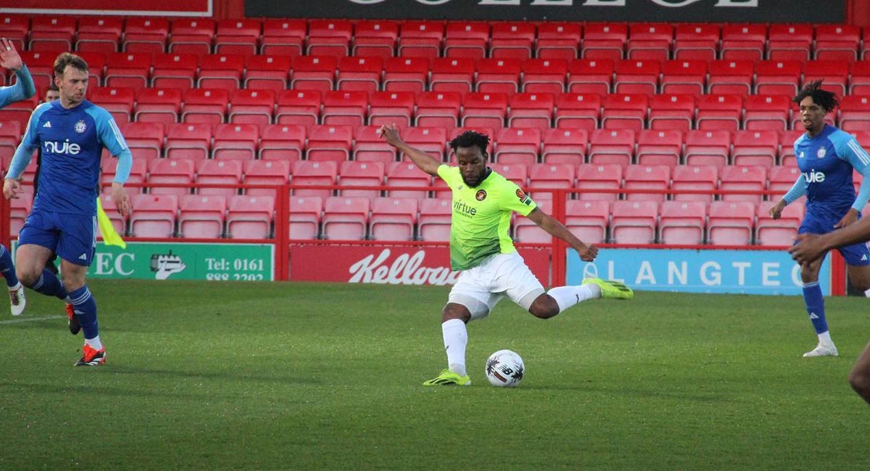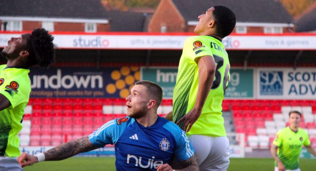 The best chance came on 35 minutes when Halifax’s Wright slid an effort into the side netting from a dangerous ball across the Fleet six-yard box.