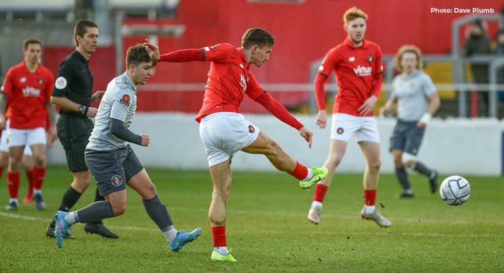 “It always looks easy when you have a 5-0 win [in midweek] but you need to go for 90 minutes, to fight hard. We had some spells out of possession [against St Albans] where we needed to work hard against the ball but for me there’s no excuse when you want to be in the mix and up the table, you need to put the ball in the back of a net. In the first-half I don’t know how many clear-cut chances we had but you need to come back in the game; if it’s maybe 1-1 at half time it’s a little bit different – then you have 45 minutes and you don’t have the feeling all the time you need to chase, you need to score. Then we finally had the equaliser but conceded such an easy goal, so you need to go again. So it’s not easy but when you want to be up top, then you need to make sure that you put the ball in the back of the net.”