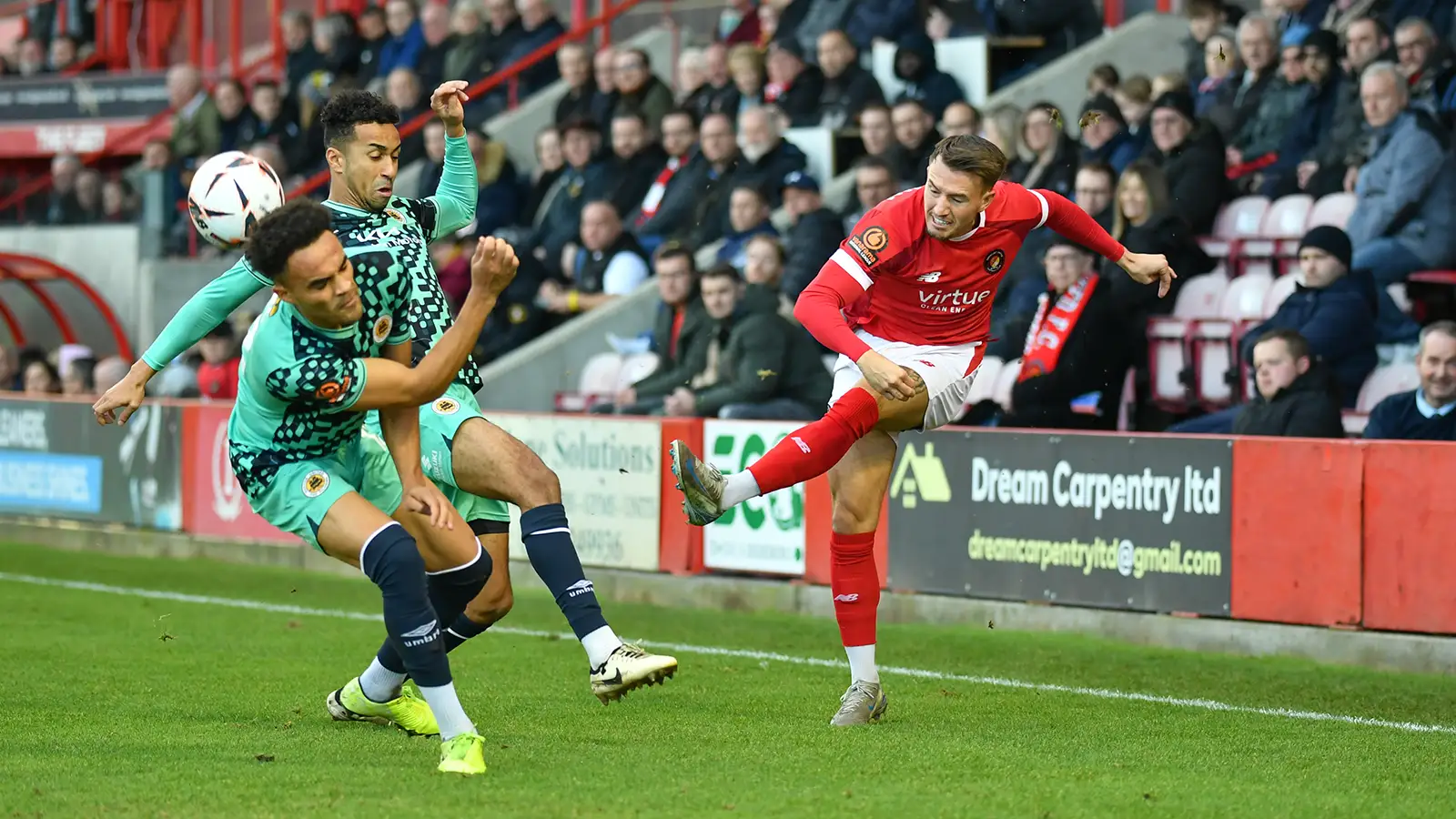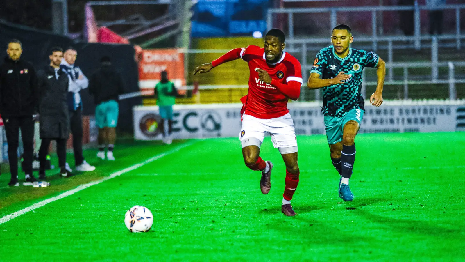 Fleet’s own efforts were closer with Luke O’Neill’s 35th minute free-kick requiring a smart save from Aidan Stone. From the corner, a flick-on from Rakish Bingham fell for Toby Edser following up behind but he side-footed the chance just wide of the post. O’Neill then had another sight of goal just before the whistle, heading just over from another corner.