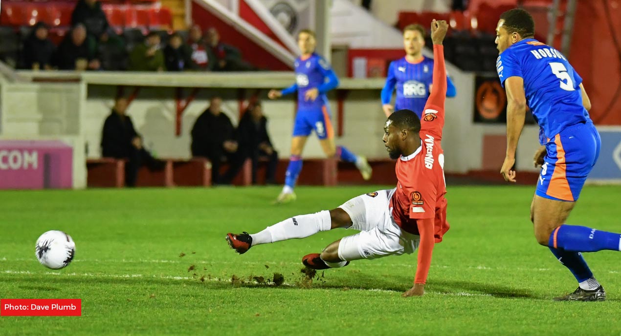 The tempo from the Fleet was more than the Oldham midfield could handle but their defence kept them level and they went into the final moments looking to snatch a late winner. Mark Kitching’s close-range header and a strike from distance by Mike Fondop were just off target.