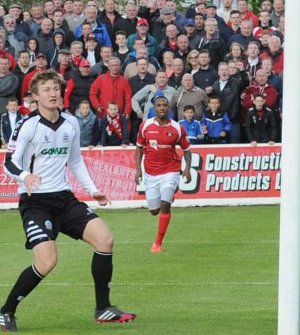 The break didn’t lift the game into life any further though Fleet had two additional chances, both falling to Ben May. The first saw May glance a header just over the bar and then a pacy cross from Cook just eluded the Fleet No.9 as he rose beneath the crossbar.