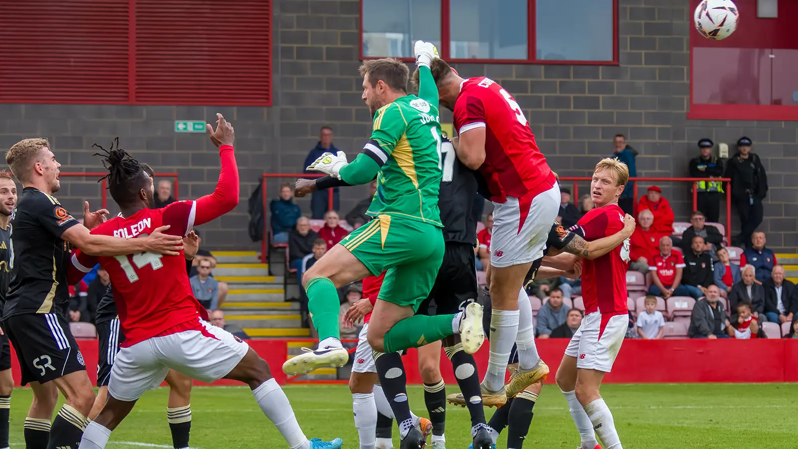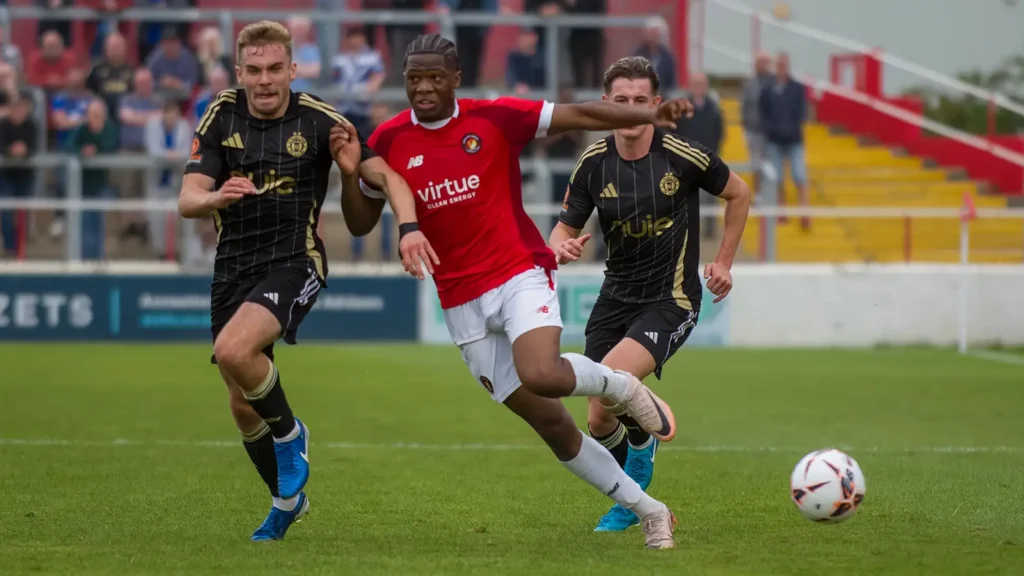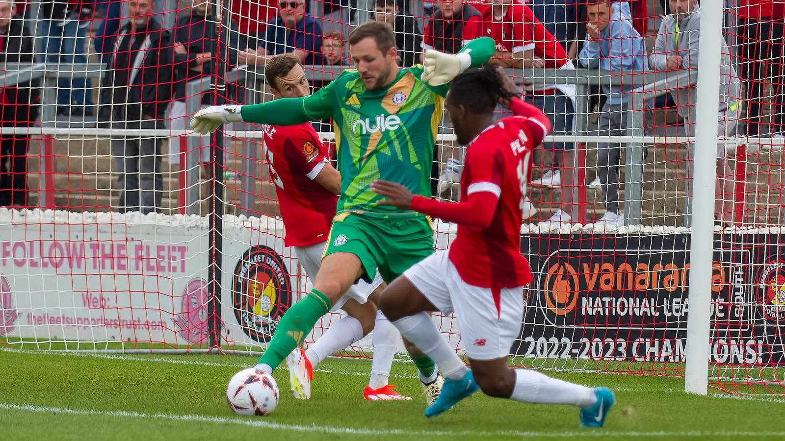 A Craig Tanner effort from distance tried to dip over Johnson and Franklin Domi’s shot was diverted behind as well. Jamie Cooke was dismissed in time added on for a second yellow card after he clattered Ben Chapman but it was too late to give the Fleet any real advantage.