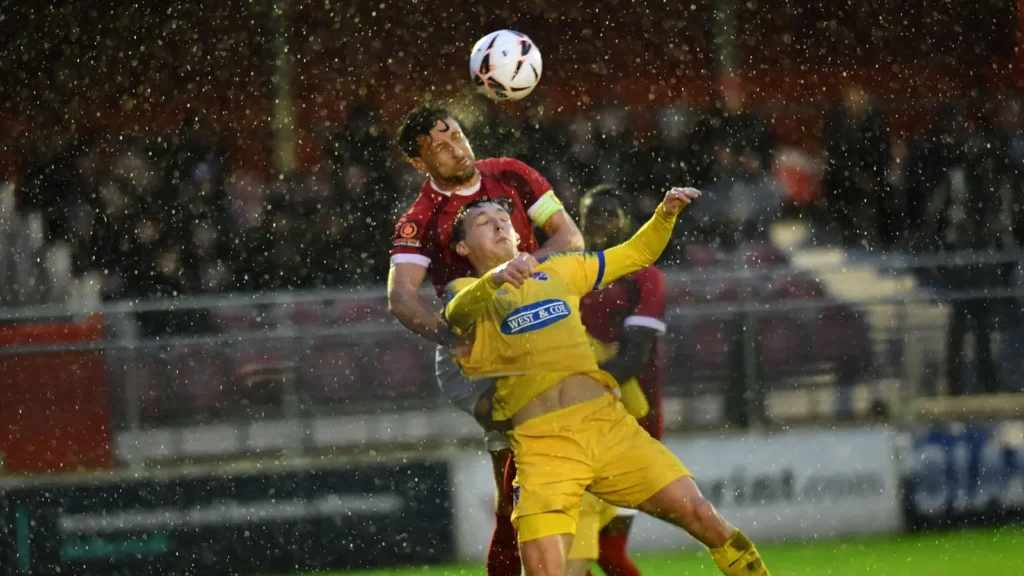 There was minimal action in the opening stages of the match and Ryan Hill’s free-kick was a comfortable take for Mark Cousins before Josh Rees and Dylan Stephenson tried to fire home in a crowded Fleet box.