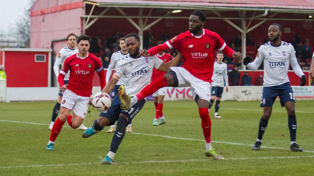 The Fleet certainly looked the part for the opening 45 minutes and fans could have been confused about who was in promotion form and which team was bottom of the table. Alex Lankshear took the game to York down the left early on before George Moncur’s free-kick landed just out of reach of a red shirt inside the box.