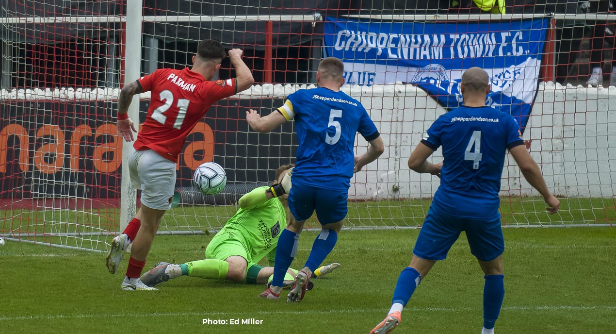 Chippenham had a couple of moments of promise of their own. Joe Hanks almost repeated his goal of two weeks ago with a shot from distance that produced an acrobatic dive from Louie Moulden that was perhaps more eye-catching than it was necessary!