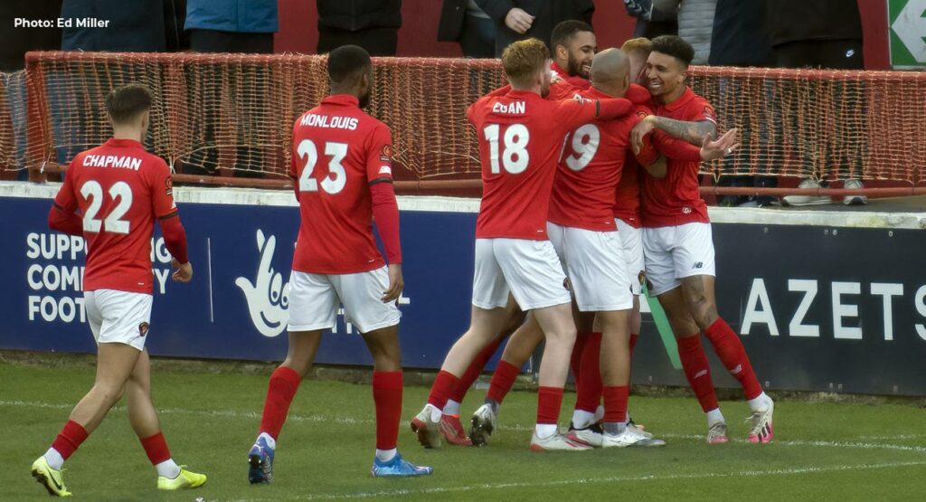 It was a strike worthy of winning a match and Fleet did their level best to do just that in the 35 minutes remaining. Just past the hour mark, Wood was determined to protect his own strike as he put enough pressure on Robinson’s swift break from the halfway line to ensure red shirts got back to block the path to goal.