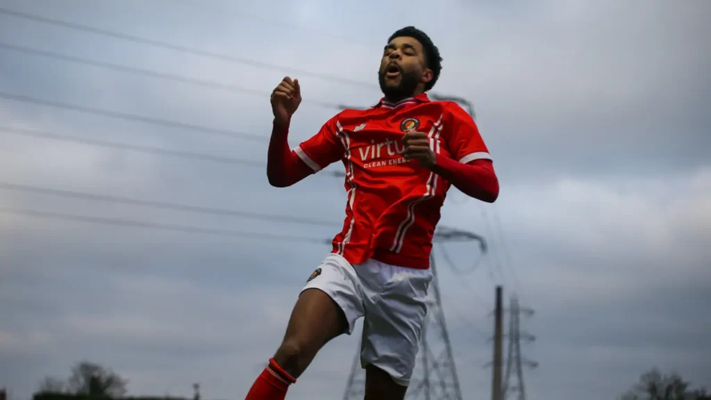 Tom Leahy drew the first save of the afternoon when his turn and shot on 12 minutes was comfortably gathered by Matt Hall and that brought forth an encouraging spell for the Angels. Three minutes later, Naz Bakrin snuck in behind Lennon Peake to get on the end of a high delivery into the six-yard box and it needed Hall’s intervention to put the Tonbridge midfielder off his attempted lob.