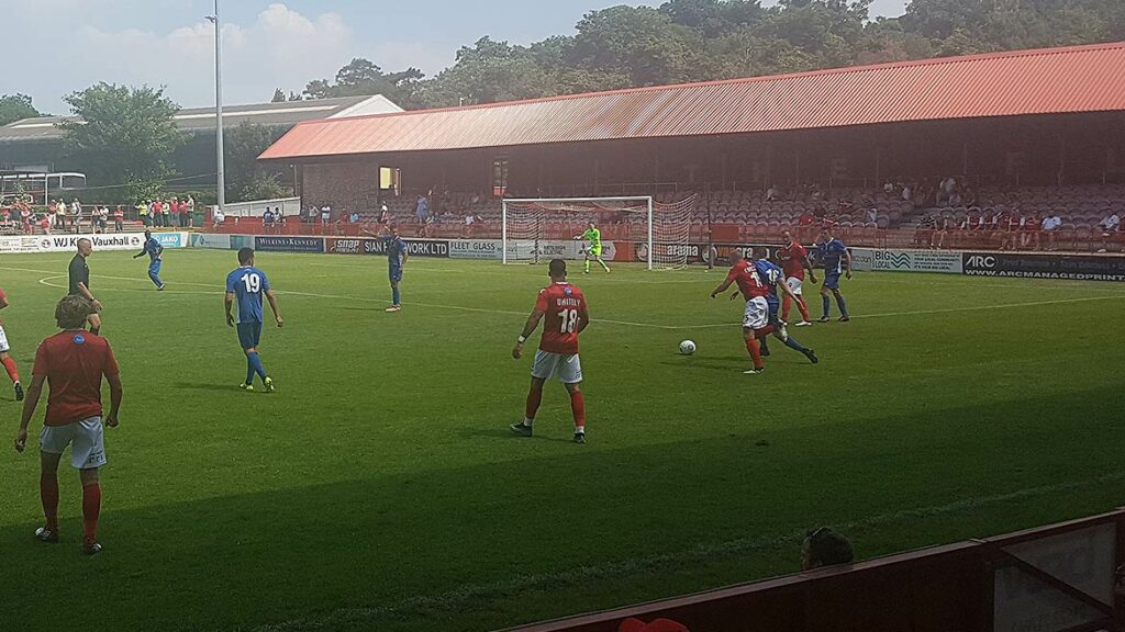 Fleet should have restored their lead four minutes before half-time when Weston’s fine through ball had enough on it to play McQueen through and the Fleet striker’s snatched shot was decent but palmed away by Julian. Shields attempted a follow-up but that skewed off target. The visitors applied some pressure late on and a corner was hoisted clear by Dave Winfield but only on to his own crossbar, Walton striking the rebound high over.