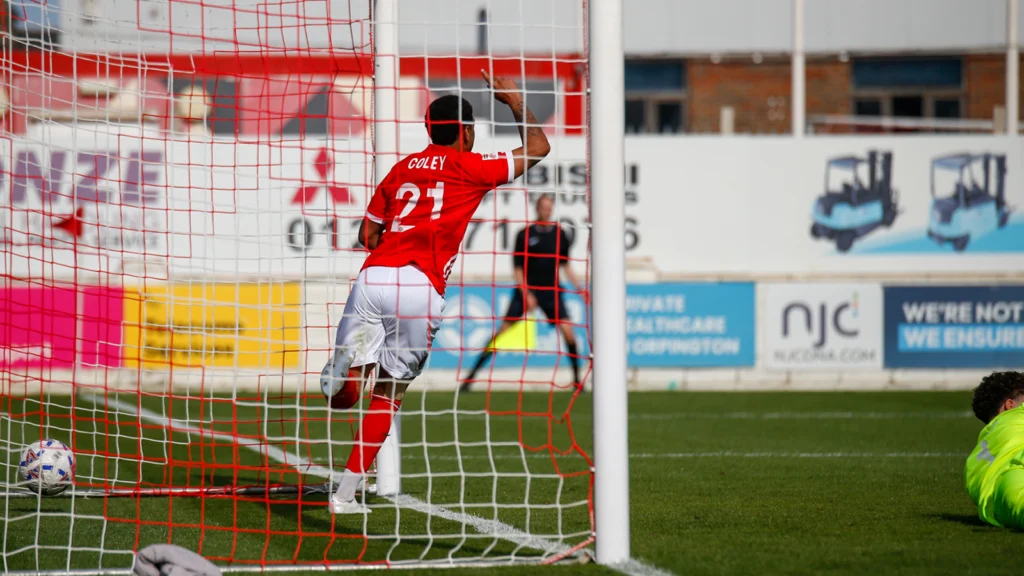 An opener arrived just before the half-hour mark with Josh Coley securing his second of the season. Aaron Cosgrave released Ben Chapman to cut into the box and his ball across goal caused confusion between Nasta and Makai Welch, who between them sent the ball back into Coley’s path and over the line it went.