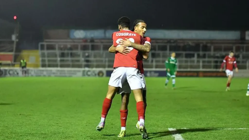 The Fleet nearly capitalised from a heavy back pass by Morgan Williams which Ollie Wright just about collected with his feet as the ball threatened to roll right over the line. Next up, Ben Chapman picked out Moncur heading into the area, the ball flicked on towards Kwame Thomas but he couldn’t keep the headed effort low enough.