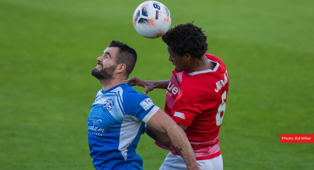 And sub number three Shaq Coulthirst wasn’t far off an instant impact with a shot pushed behind by Henly at full stretch. Tonbridge had their bodies on the line, never more so than when Edser sent a piledriver on target that somehow hit a blue shirt on its way to goal and he and Poleon both saw follow-up efforts charged down.
