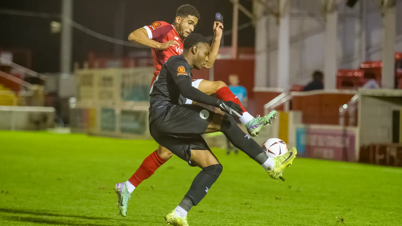 The Fleet picked up the pace and forced a handful of chances at the Swanscombe End. Rakish Bingham latched on to a misplaced pass from goalkeeper Owen Mason but didn’t trouble the young Gateshead keeper. Consecutive corners proved a threat for the Fleet and Tyler Cordner’s header was marginally wide while Gateshead cleared a number of crosses into the middle.