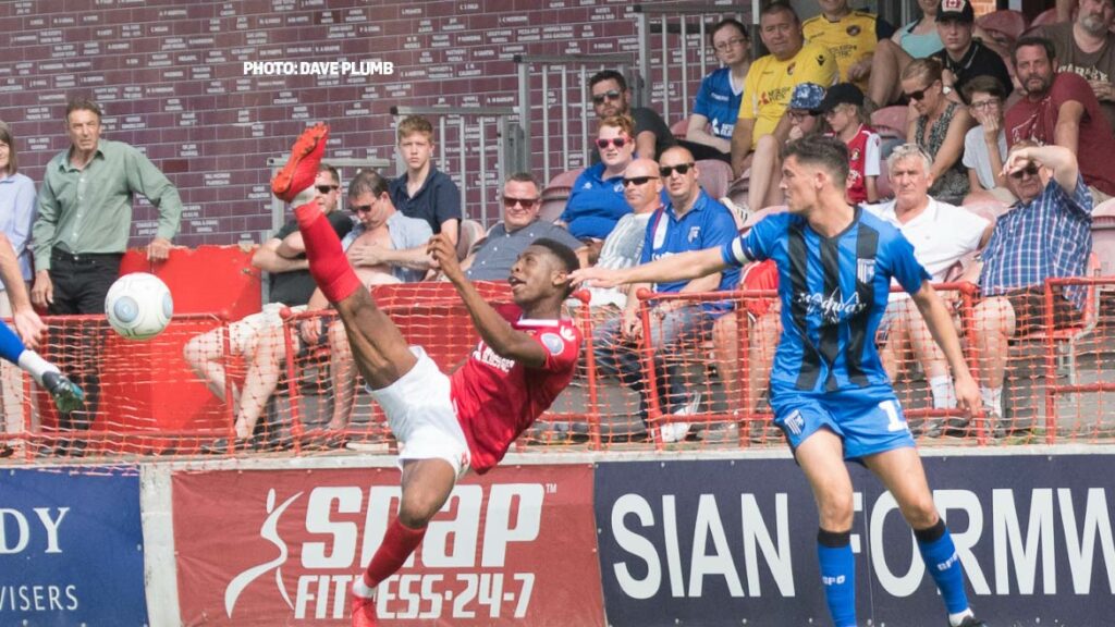 Fleet reserved their best performance of pre-season for their toughest test yet as a Gillingham side with four new signings and seven who made League One appearances last season succumbed to a goal in either half. And the afternoon was made all the more memorable for Ebou Adams’ stunning overhead kick for the second goal, which many watching inside the Kuflink Stadium claimed was the best goal they’d seen in the ground.