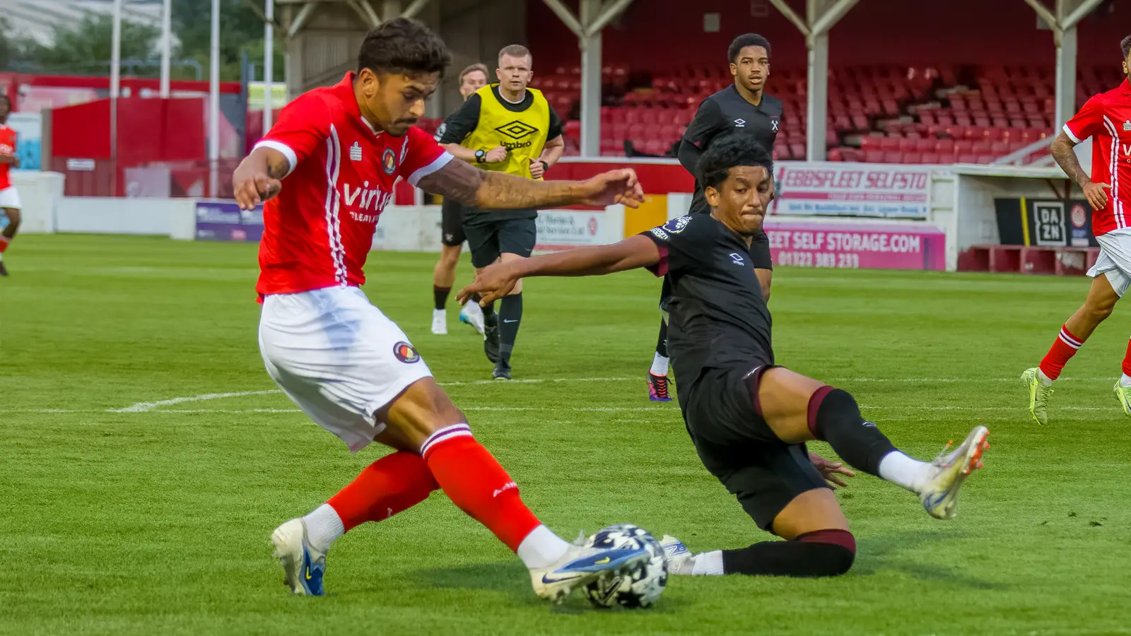 West Ham came close to securing a consolation goal but Mark Cousins made a smart dive to his left to deny Josh Landers who was in close proximity after getting behind the Fleet line, something the visitors found hard to do for much of the rest of 90 minutes.