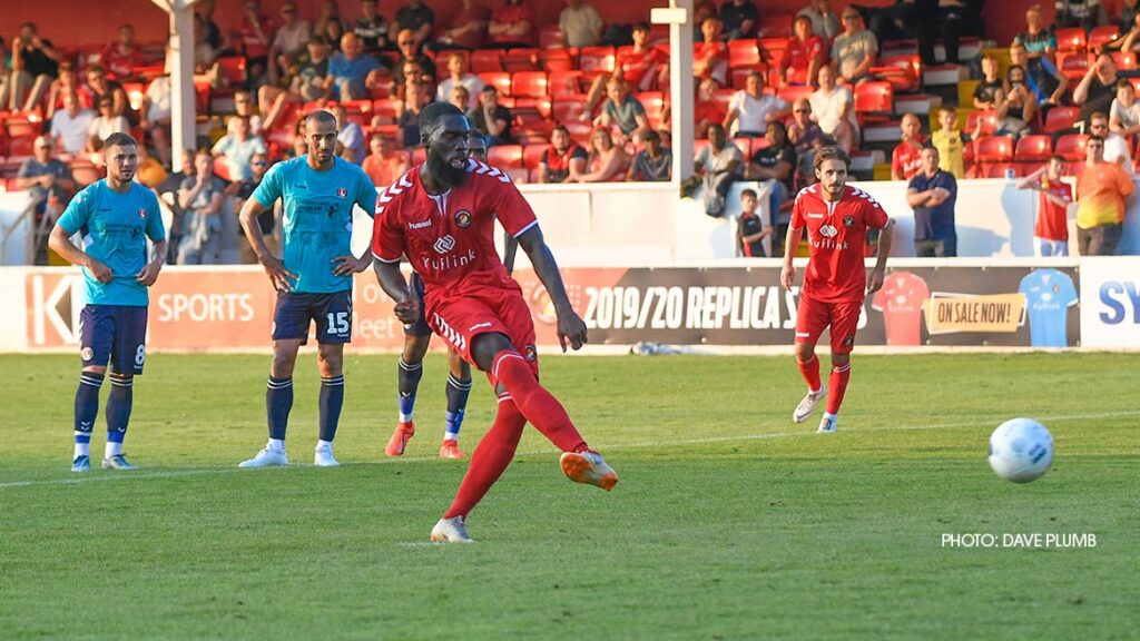 Fleet picked up their second friendly victory and did so in some style over a very strong Charlton Athletic side at the Kuflink Stadium this evening. Ayo Obileye’s fourth goal of pre-season, courtesy of a penalty, and a second by trialist striker Tomi Adeloye were too much for Charlton to pull back despite a late consolation and rally.