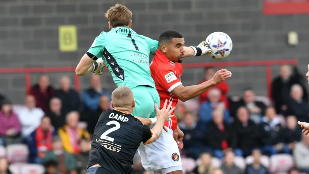 An early chance for the Fleet came when Ben Chapman’s looping delivery looked to pick out a fellow red shirt but Harrison Foulkes punched that effort clear.