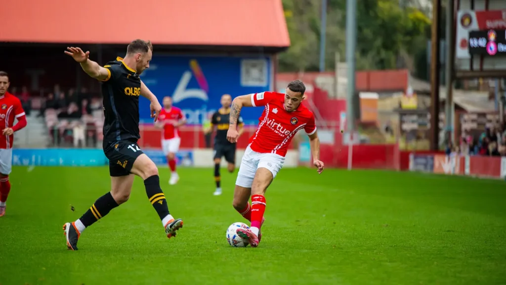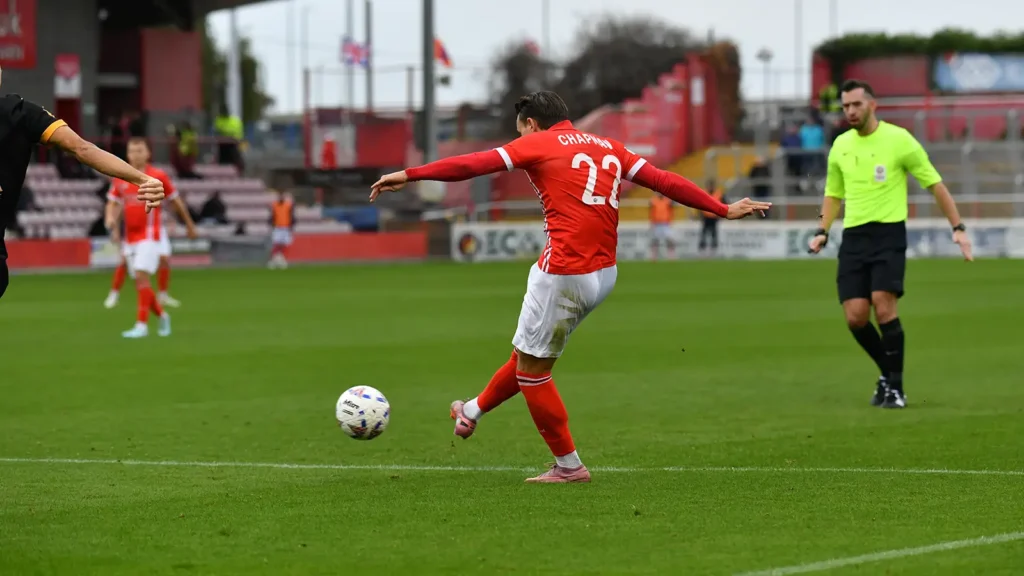 Josh Wright made a double substitution with Toby Edser and George Moncur brought on and both had a hand in the Fleet’s equaliser on the hour. Edser carried the ball and Moncur played Chapman in out wide, with the No.22 then deciding to cut in and fire a shot across Foulkes and into the opposite corner.