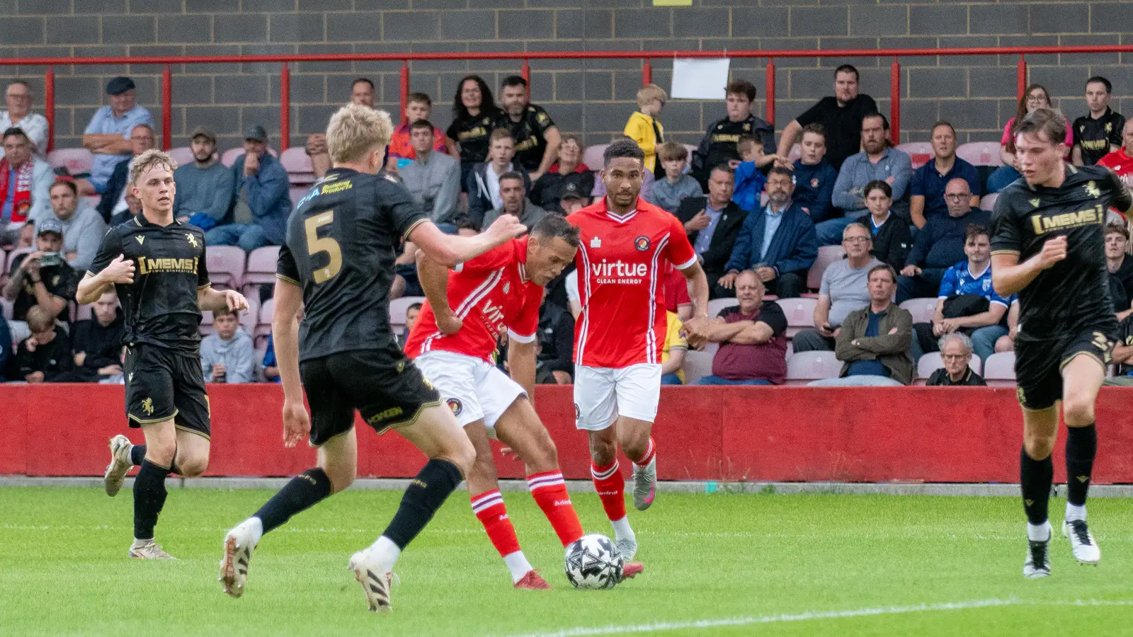 The Fleet doubled the lead from the spot. Samuel was adjudged to have been brought down by Ogie and it was the No.14 who stepped up to convert the spot-kick himself, sending Turner the wrong way.