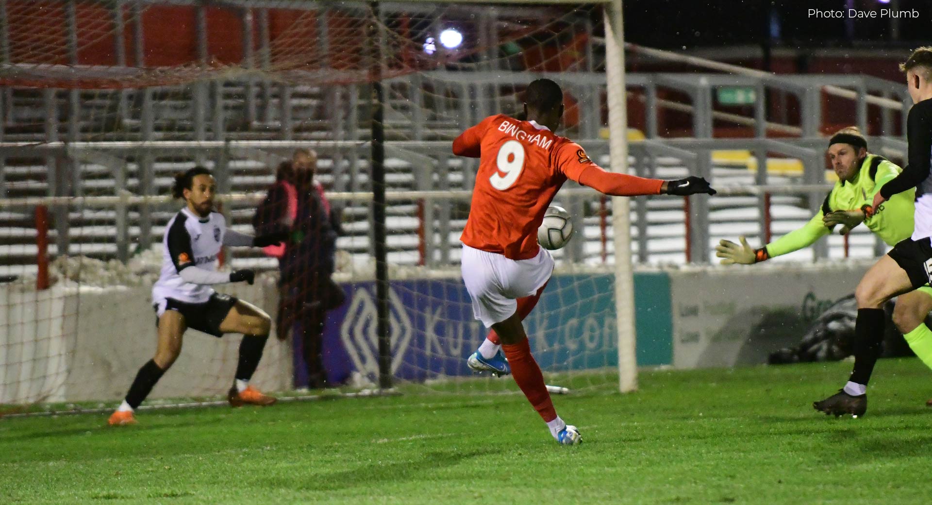 But it was the home side instead who took the initiative on 19 minutes. Martin did the hard work, carrying the ball to the edge of the box in a mazy run. His shot was parried by Julian but only to the feet of Bingham to the left of the six-yard box and the Fleet top scorer hit it high into the net between Sam Cox on the line and the flailing Julian.