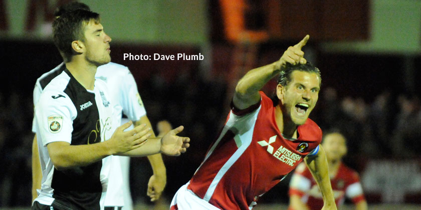 As consistent as the results this season has been the starting line-up and Daryl McMahon once again named an unchanged eleven. It didn’t take Fleet long to get into their passing stride and a foul on the edge of the box provided the first opportunity, Danny Kedwell driving the free-kick much like he does his penalties, down the middle, forcing Luke Purnell to push it over the bar.