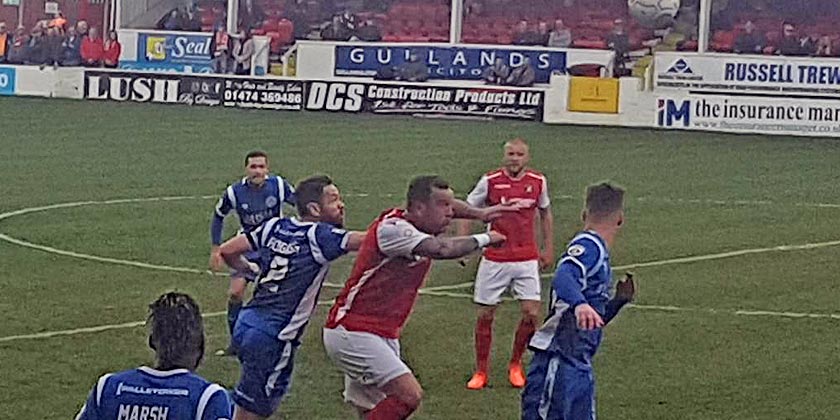It was tough on the Fleet and there seemed little way back into the game but McMahon threw Norman Wabo straight into the fray and his eagerness to impress seemed to give the home side the impetus they needed. The Southend loanee took just five minutes to provide a chance, heading a Sean Shields ball to Kedwell’s feet on the edge of the box but Fleet’s veteran striker lifted it over the crossbar.