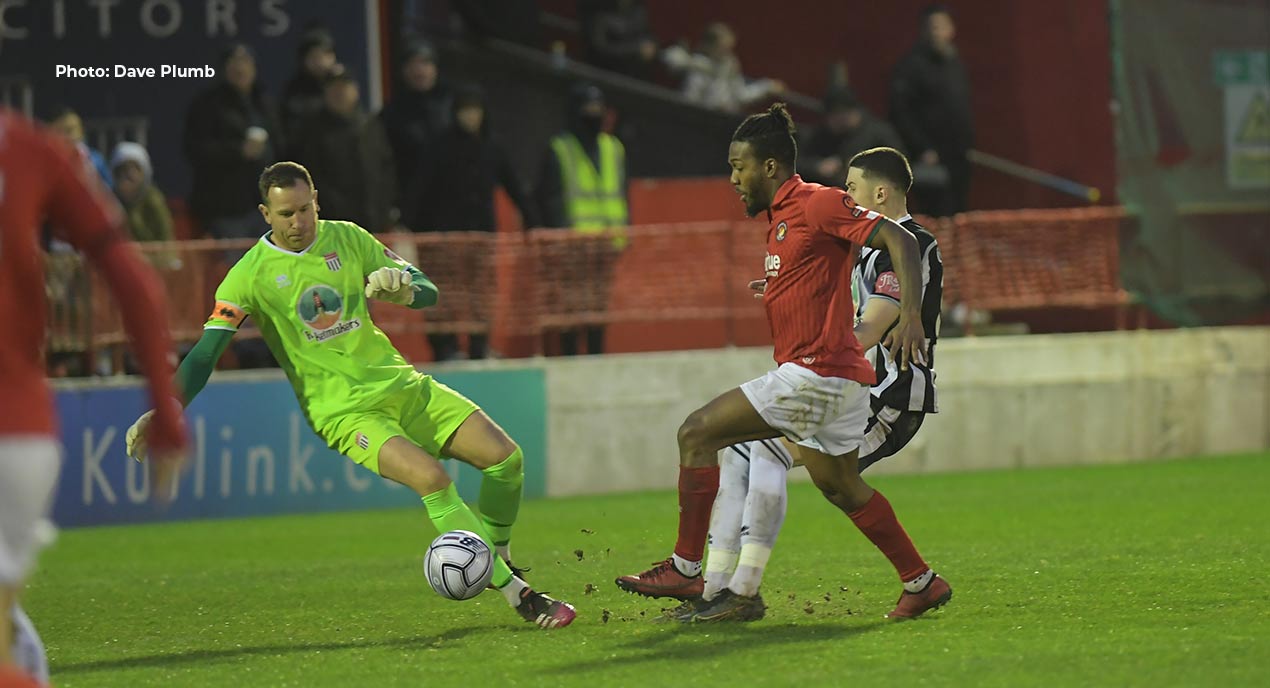 The Fleet came close to breaking the deadlock after 20 minutes but a double block from Joe Raynes thwarted that, as he first denied Poleon and seconds later cleared away Bingham’s shot. The away side then broke on the counter to eventually find David Sims-Burgess, whose effort trickled past the post.