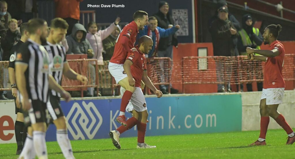 The Fleet came close to breaking the deadlock after 20 minutes but a double block from Joe Raynes thwarted that, as he first denied Poleon and seconds later cleared away Bingham’s shot. The away side then broke on the counter to eventually find David Sims-Burgess, whose effort trickled past the post.