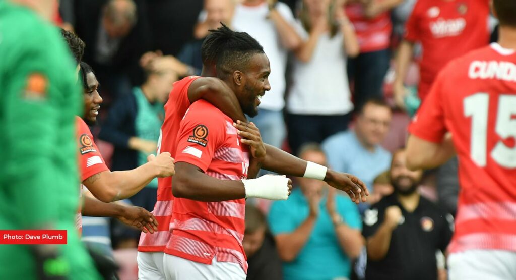 But three minutes after that the goal the home side deserved arrived. It was courtesy of a quick move upfield, sparked by Luke O’Neill’s header into space for Rakish Bingham. His fourth assist of the season came as he found Poleon with room to run across Stuart Nelson. The club’s top scorer looked purposeful and rifled his shot at Nelson with enough power to evade the goalkeeper’s grasp and head over the line.