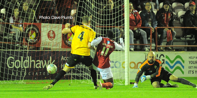 McMahon made two changes to his starting lineup, with Anthony Cook and Myles Weston making way for Andy Drury and Danny Mills, while the visitors were unchanged. And it was they who started off quickly, almost forcing a goal in the opening minute when they cut through the Fleet rearguard and Lewis Smith sent a dangerous shot skidding across the surface and past Nathan Ashmore’s far post.