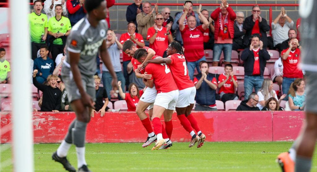 1-0 soon became 2-0 when a superb long ball from Domi found McQueen in the box alone. The flying winger calmly brought the ball down to his feet and executed the shot to perfection to slot the ball past Ashmore and double the Fleet’s advantage.