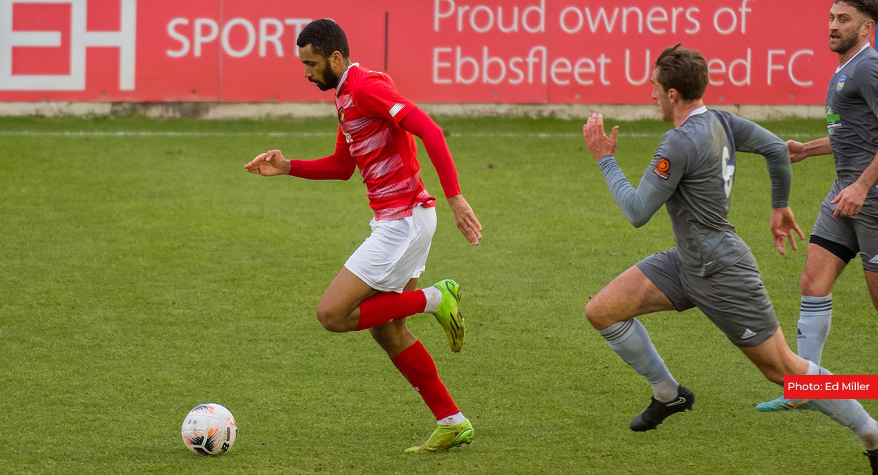 Concord might have gone in at half-time – eventually – with that single goal lead after only four minutes of time were added but justice was done when Fleet used a portion of that to equalise. Superb work from N’Guessan to wrestle the ball from under a Concord foot on the edge of his own box was supplemented by a scintillating pitch-long run to the other box where he stabbed the ball wide for Bingham. Goalkeeper Mitch Beeney stopped his initial attempt but Bingham applied the finish to force it over with his head.