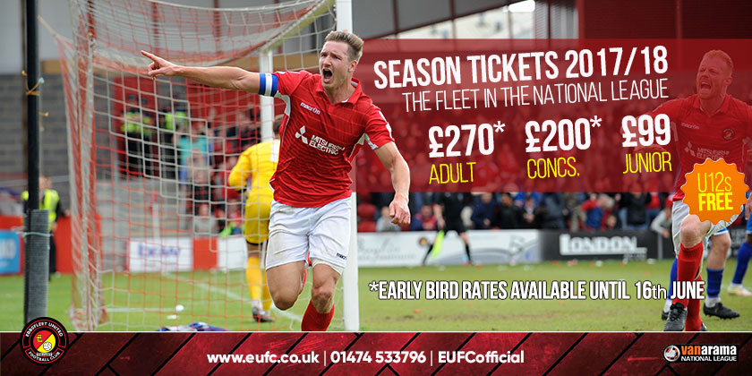 The club is pleased to announced our revised season-ticket and matchday admission pricing for the 2017/18 season in the National League, with an early-bird discount ending on Friday 16th June. Tickets go on sale to personal callers to the club office from Monday, while adult season tickets can be purchased online now.