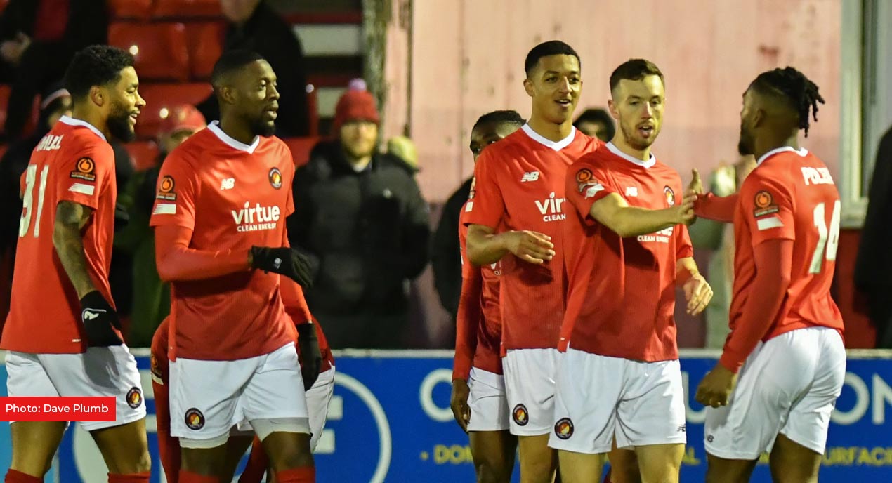 There were plenty of chances in the opening minutes. Fleet earned the first with just two minutes on the clock when Nathan Odokonyero picked out Dominic Samuel through the middle and though goalkeeper Jack Giddens blocked the shot, the ball ricocheted back off Samuel’s shoulder to run wide.