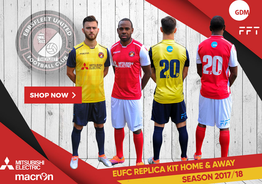 Ebbsfleet United have unveiled their home and away kits for the 2017/18 season in the National League – with Mitsubishi Electric, GDM Partnership and FFT all on board as front of shirt, back of shirt and shorts sponsors respectively.