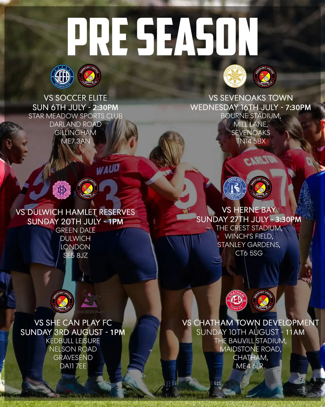 Ebbsfleet United Women go into their new campaign under the new management of Paul Reid with a number of pre-season friendlies booked in through July and August.