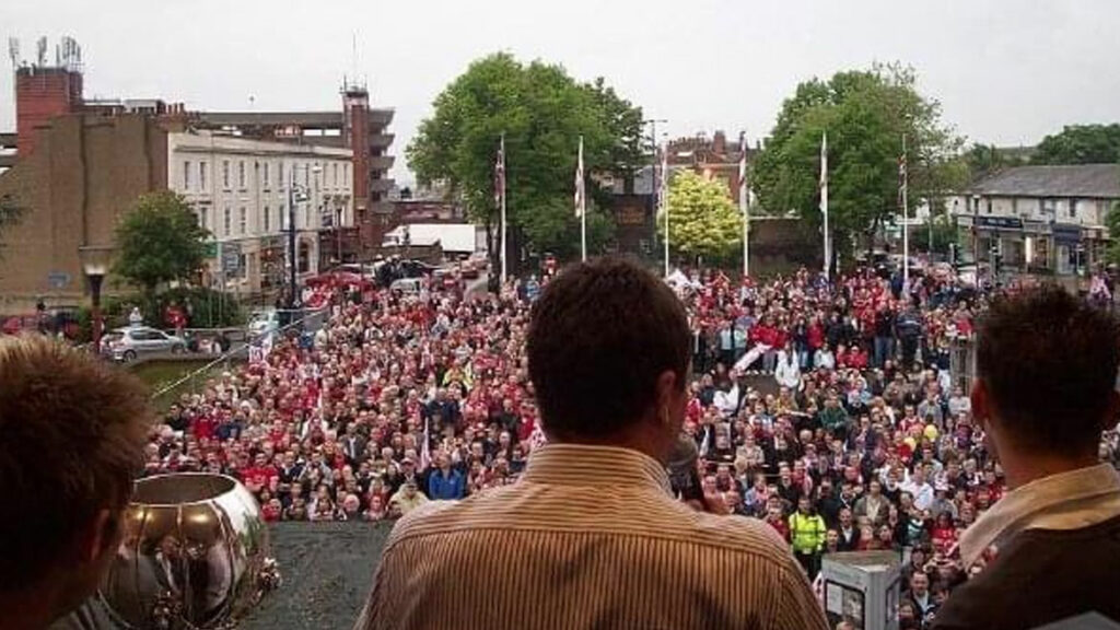 It includes interviews with manager Liam Daish, assistant Alan Kimble, defender Sacha Opinel and club secretary Roly Edwards recalling the squad’s invitation to the Civic Centre and their welcome by the people of the town.