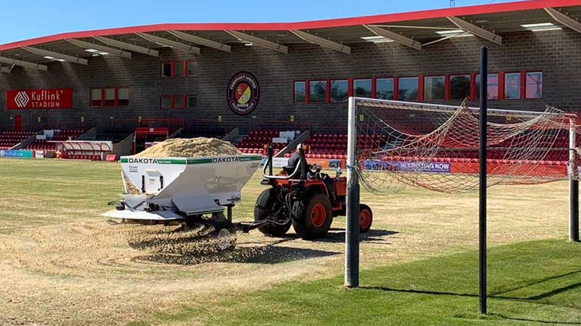 It’s not all inactivity in the world of football at the moment as the pitch renovation work ongoing at the Kuflink Stadium this week proves.