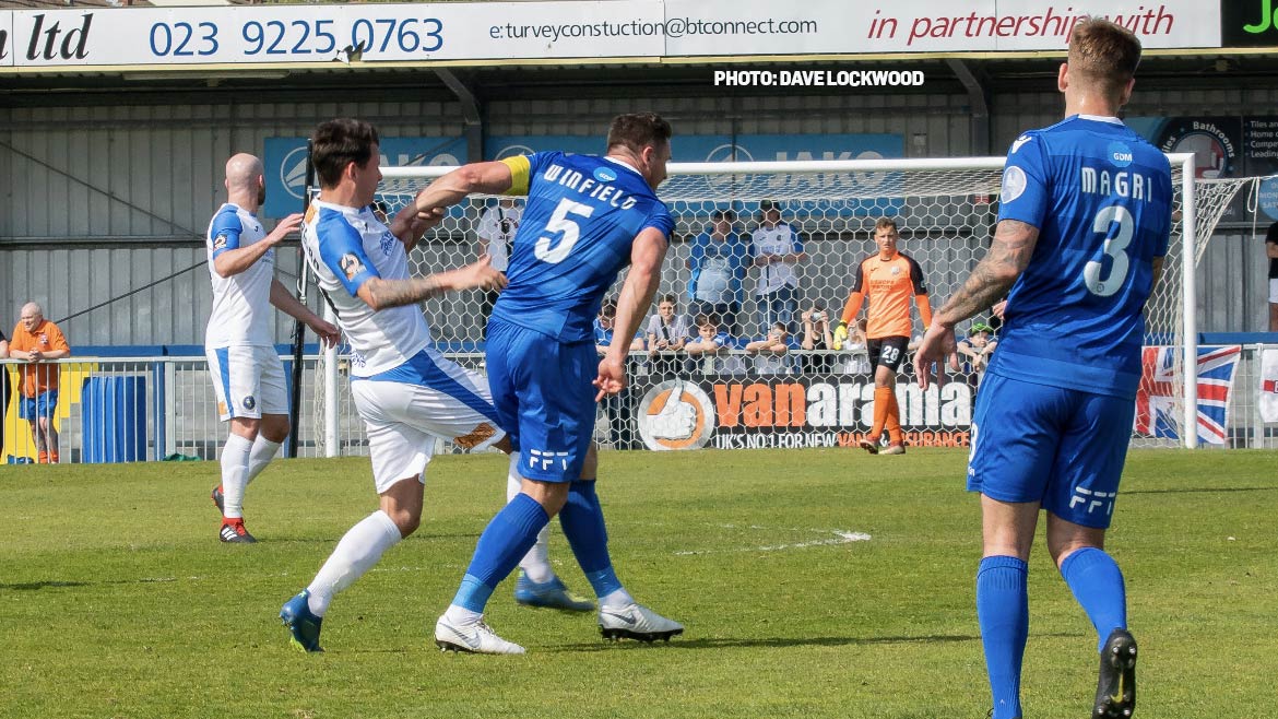 A couple of yellow cards followed as play became scrappy, Rutherford and Winfield receiving a caution each as the former fell to the ground clutching his face after being brushed by the Fleet skipper’s arm.